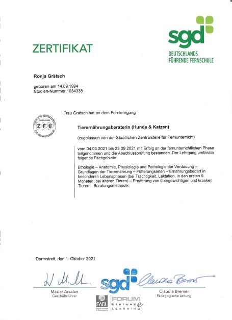 Mit fundierten Studien, Praxiserfahrung im Zoofachhandel und viel Herz berate ich dich individuell zum Futter damit dein Tier gesund bleibt und ihr euch rundum versteht.